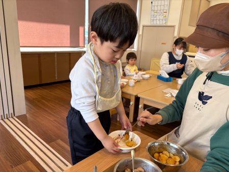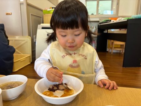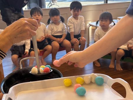 給食では、みたらし・きな粉・あんこの3種類の団子を食べ、おかわりもしていました😋