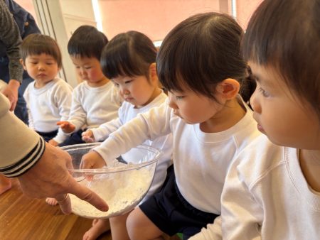 上新粉を手で触ってみると、さらさらで白くて雪みたい⛄️