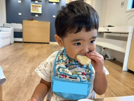 おやつは栄養士手作りのさつまいもあんの入ったうさぎパン🐰子どもたちに大人気でした💓