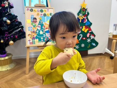 おしまい!かと思ったら…まだプレゼントが‼️みずほ園、3つ目のクリスマスツリー🎄そして、大きな箱の中には誕生日ケーキ🎂