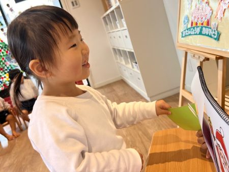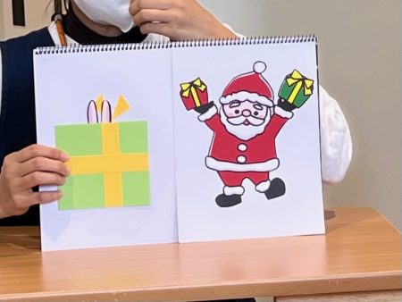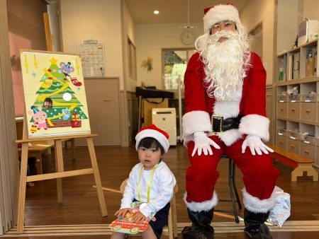 特別ゲストのサンタさんが誕生児にプレゼントを持ってきてくれました🎁🎅🏻少し見えるヒントでプレゼントの中身をみんなで予想しながら開けていきます🎶