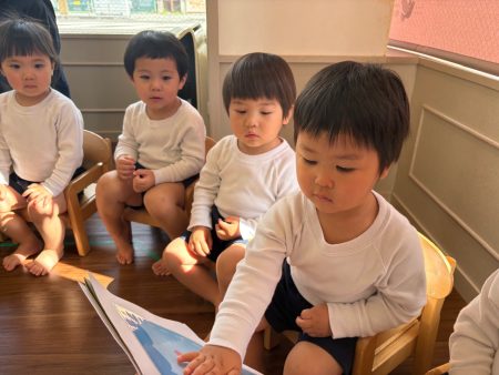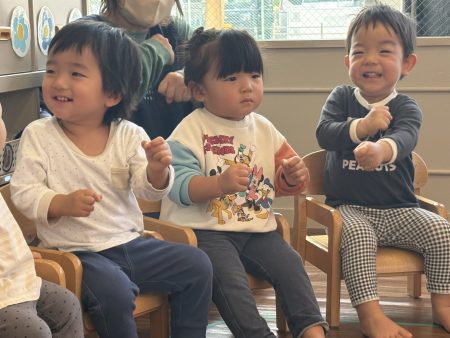 『たんじょうび』をみんなで歌ったあとはお楽しみの時間💕保育士が毎月違った出し物をします。